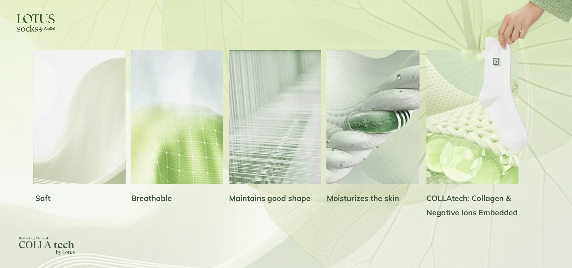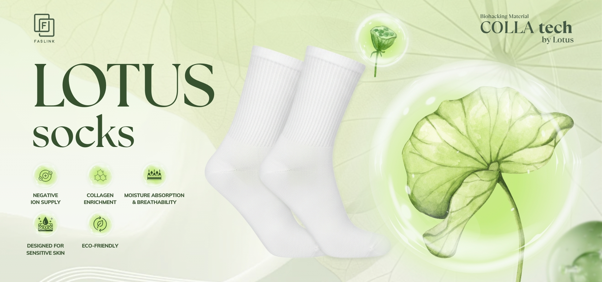 Lotus COLLAtech Socks are developed through the meeting of nature and Faslink’s material expertise: