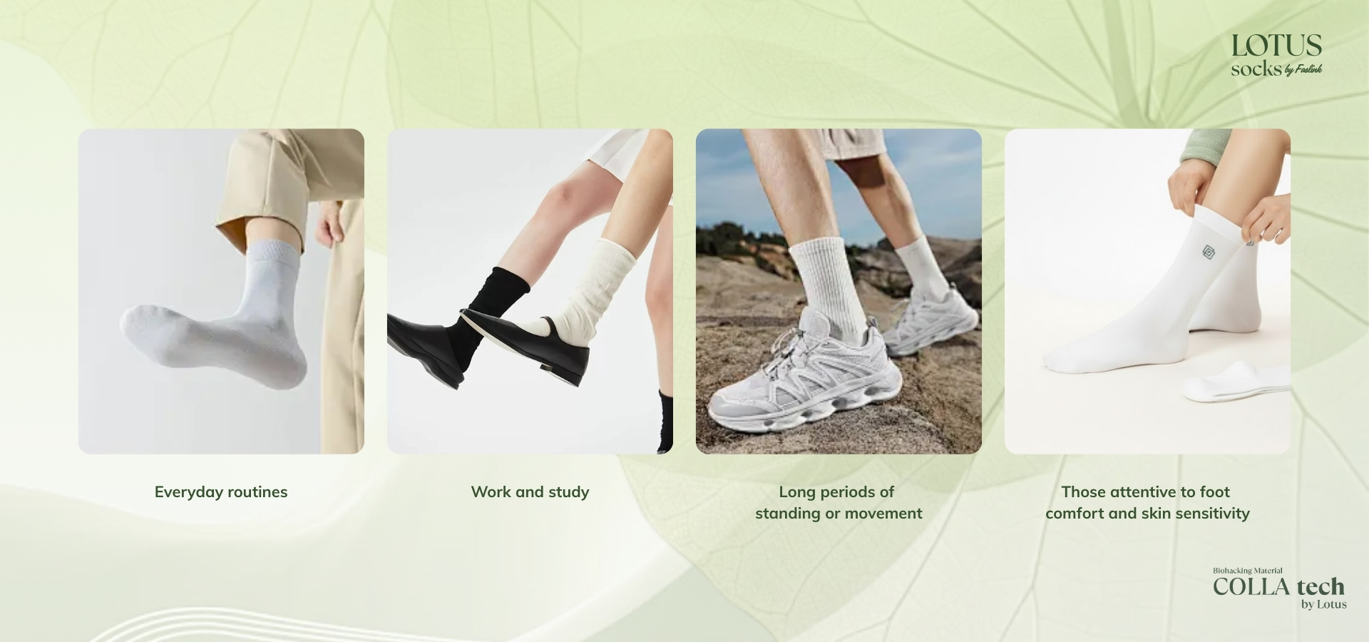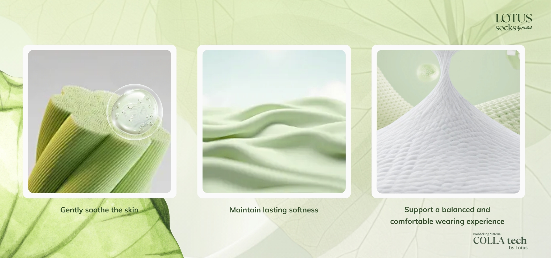 Lotus COLLAtech Socks – Gentle on skin. Thoughtfully refined with every step.
