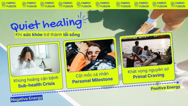 Người tiêu dùng rơi vào trạng thái “không bệnh nhưng cũng không khỏe”: thiếu năng lượng, ngủ kém, căng thẳng kéo dài, não mờ. Họ tìm đến vận động nhẹ để phục hồi: yoga, thiền, chạy đêm, liệu pháp chữa lành bằng âm nhạc- music therapy.